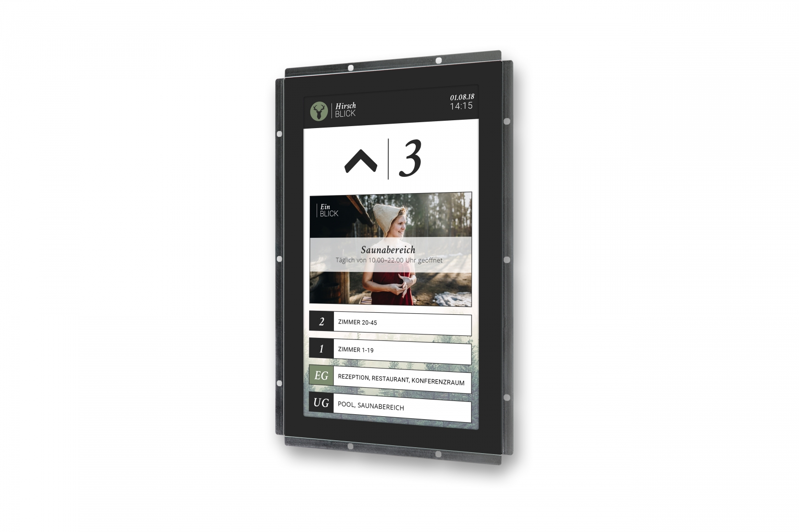 The high-quality touchmonitors of the DM-Line offer an all-in-one solution, which is not only flexible, but also impressive. The noble black glass frame of the displays ensures enough contrast and makes every display shine.
